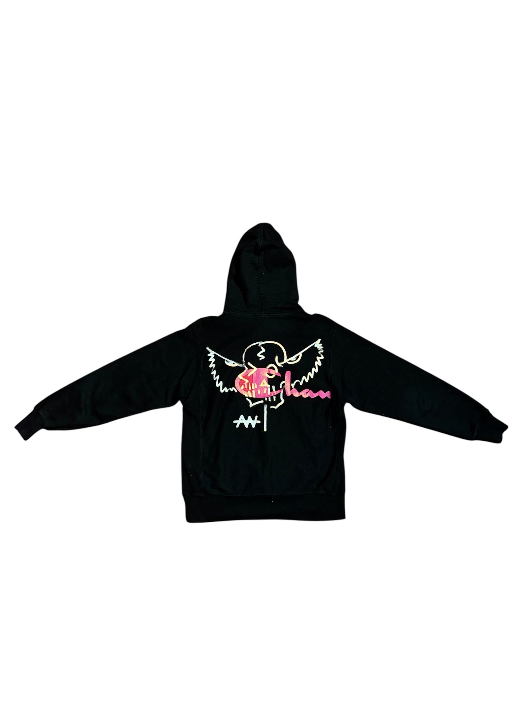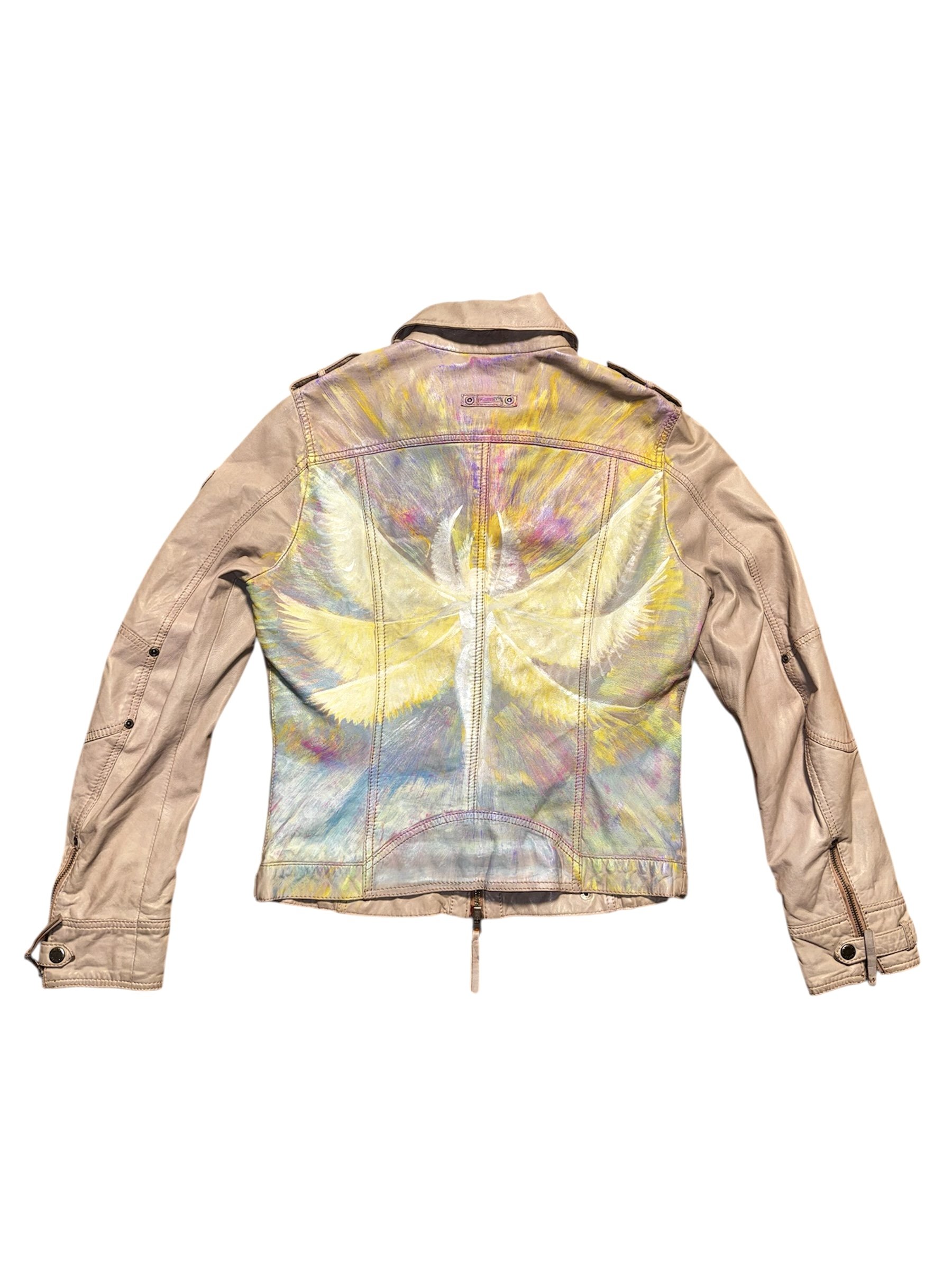 “Seraphim” on Women’s Leather Jacket $125.00 “Watchful” Hoodie $150.00 “The Veils Thinning” Hoodie $150.00 “Royal Trinity” AW Mug $20.00 “White Raven” AW Mug $20.00 “Cardinal” AW Mug $20.00 “Winged Woman” AW Mug $20.00 “Great Blue Heron” AW Mug $20.00 ‘AAA” AW Mug $20.00 “Witness“ on Leather Jacket $150.00 “Anguish” Supreme Jacket $150.00 “Disillusioned” on Crewneck sweater $100.00 “Reflection” Pants $175.00 "Six Trees" Pants $200.00 “Great Blue Heron” Denim Shorts $200.00 “Vibrancy” Coveralls $200.00 “Colorful Bones” Vest $200.00 “King Gango” T-shirt $70.00 “Path Of Blues” Jacket $150.00 “RODEO” Tie $100.00 “Colorful Skulls” Tie $100.00 “Bluebird” Sweater $125.00 “Blooming” Hoodie $150.00 "Colorful Bones" Jacket $125.00 “Bluejay” Leather Jacket $200.00 Sold out